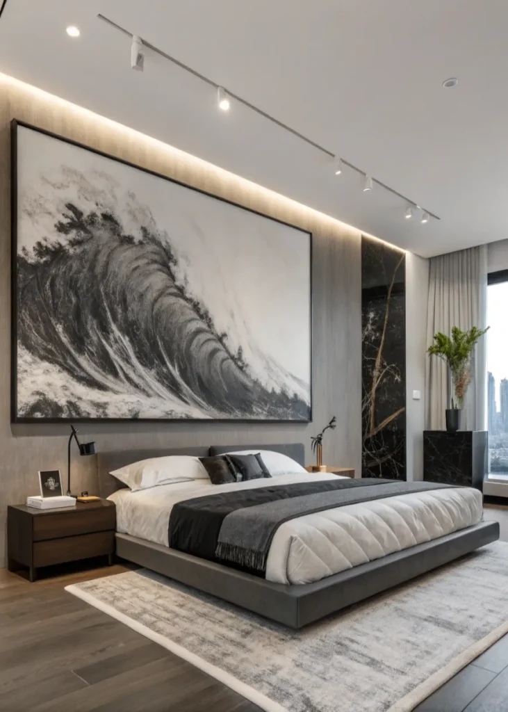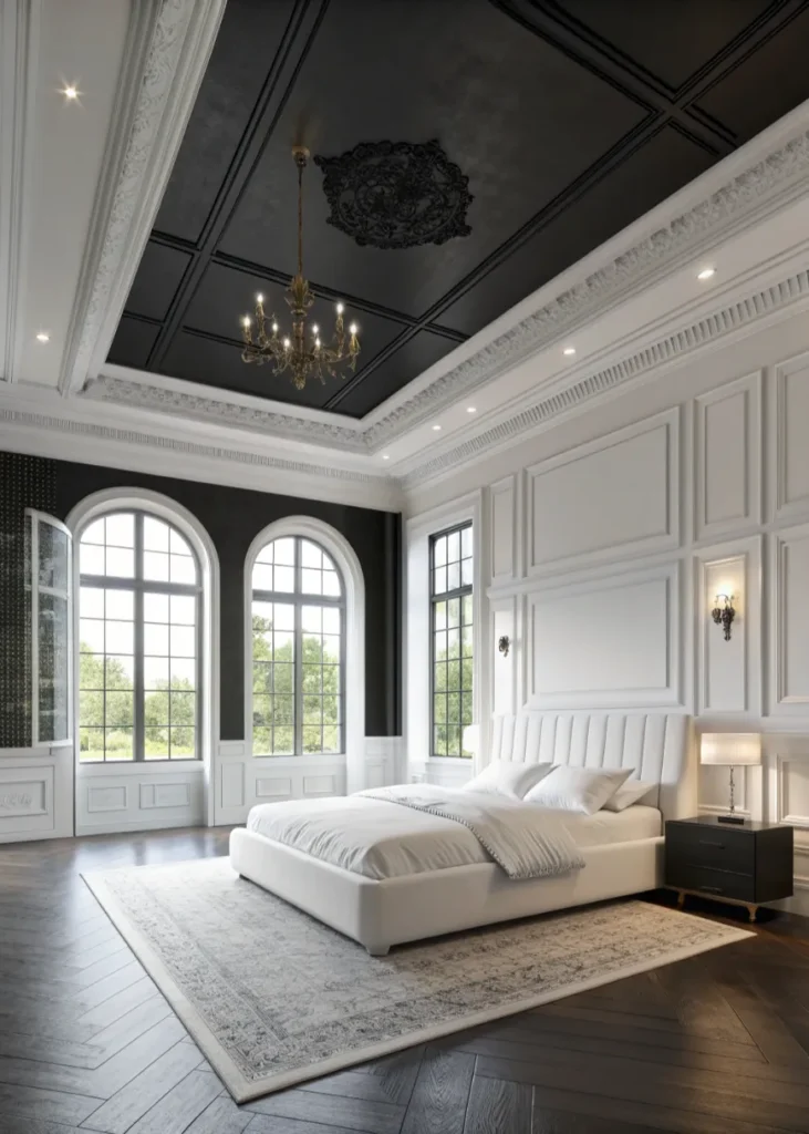 Q: What’s the best ratio of black to white in a bedroom design? A: A good rule of thumb is the 60-30-10 principle: use 60% of your dominant color (usually white), 30% of your secondary color (black), and 10% for accent details. This creates balance without overwhelming the space. Adjust based on room size, with smaller rooms benefiting from more white to maintain airiness.