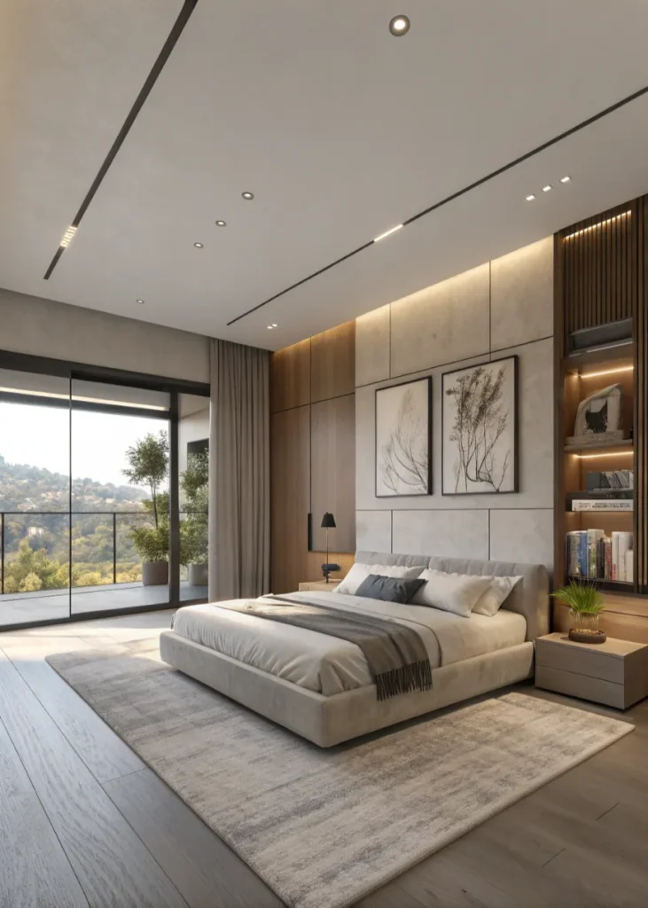 This forward-thinking master bedroom idea combines comfort with convenience. The integrated technology enhances daily routines while maintaining a beautiful, uncluttered aesthetic.