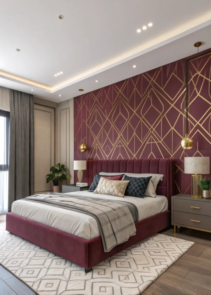 This dynamic master bedroom idea suits those who want to express personality through design but prefer not to commit bold colors to every wall. The accent wall provides just the right amount of visual interest.