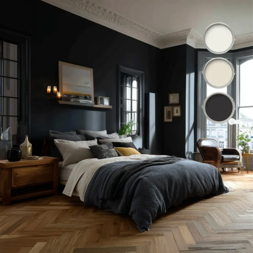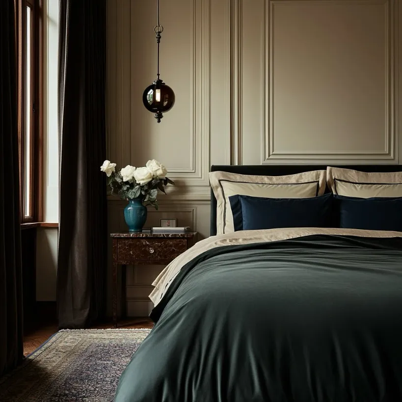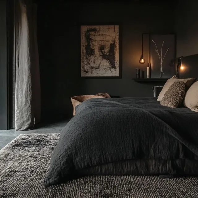 I love how deep hues create a sense of calm and mystery. Dark walls act as a perfect backdrop for metallic accents or soft linens. This design style focuses on comfort while maintaining an elegant aesthetic throughout the room.