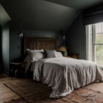 Establish a cohesive look in your Organic Modern Bedroom by matching your wall color to your bedding. This deep sage green creates a continuous, calming flow that feels incredibly grounded. You will find that monochromatic schemes simplify the design process while delivering a high-end, designer result.